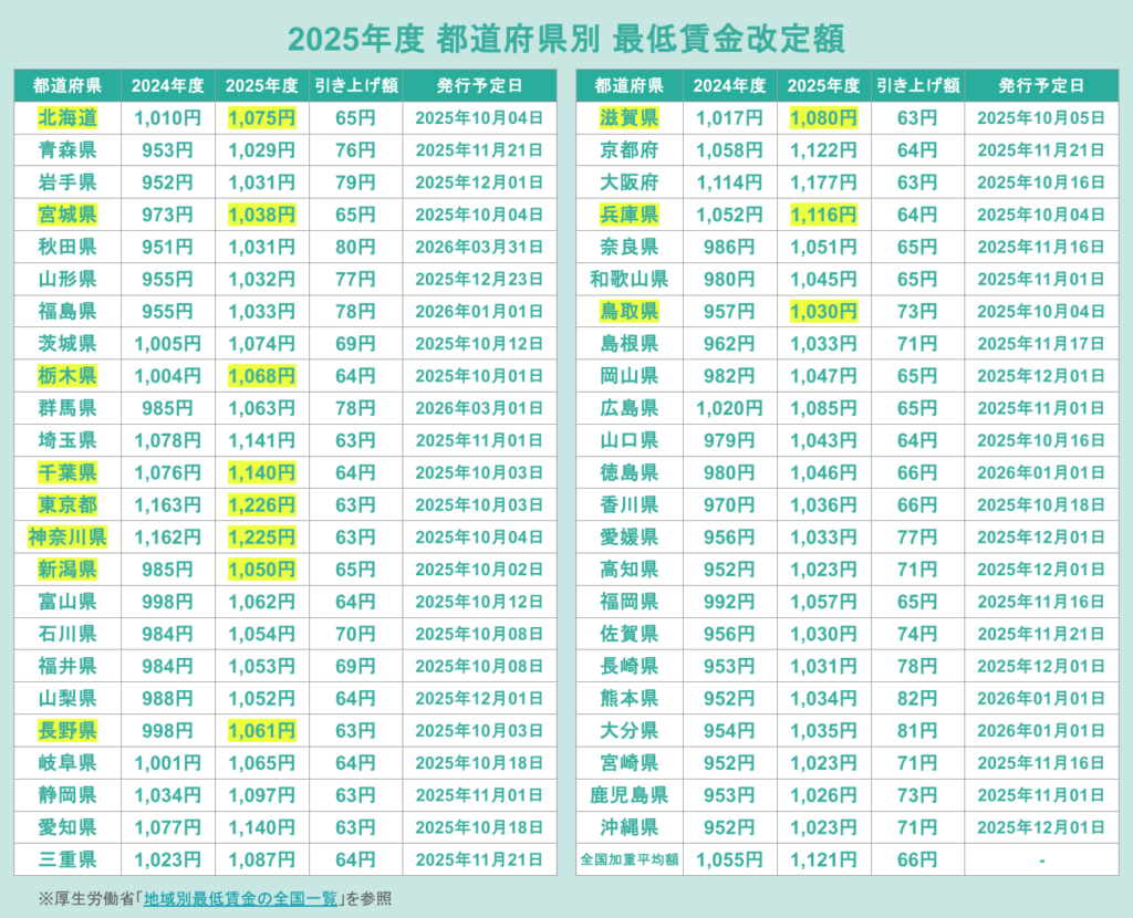 ※最低賃金の改定については厚生労働省「地域別最低賃金の全国一覧」を参照