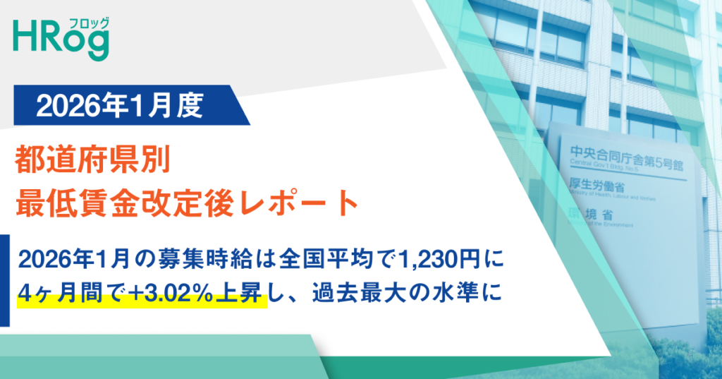 分析用求人ビッグデータを提供する、株式会社フロッグ(所在地:東京都千代田区、代表取締役:阪野 香子、以下「当社」)は、「2026年1月度 都道府県別 最低賃金改定後レポート」を発表しました。